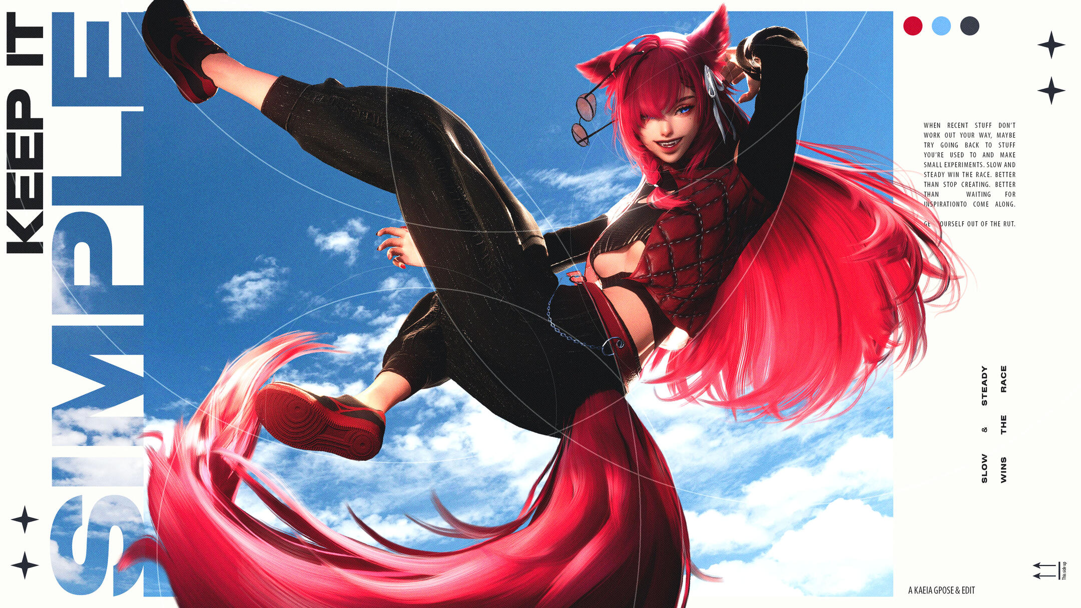 Yo! Welcome to my page. I'm Kaeia, and I take in-game photos in FFXIV and edit them. Mainly grunge and Y2K style. I'm still learning a bunch. Hope you could see and enjoy where this journey takes us!